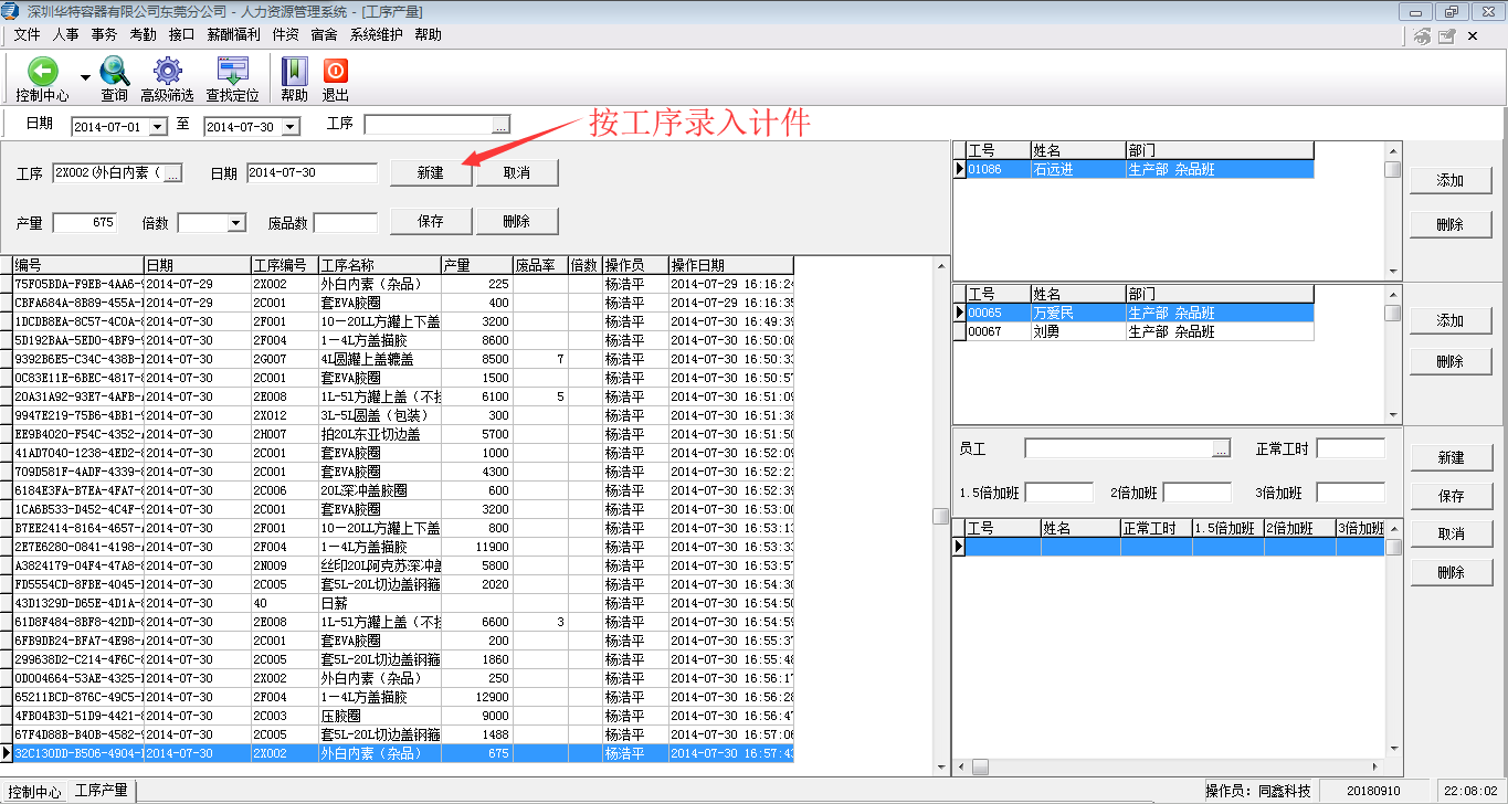 深圳華特容器為國內最大的綜合馬口鐵包裝容器生產和服務企業之一,主要生產各種罐用配件。當時現狀為1)原有計件系統已停止維護且有出錯現象,無法滿足公司發展;2)每天生產日報統計量大,需提供一種更簡捷、高效的錄入方式,方便對成果分配;3)計件明細需轉換為計時工資輸出報表,由員工簽名確認;