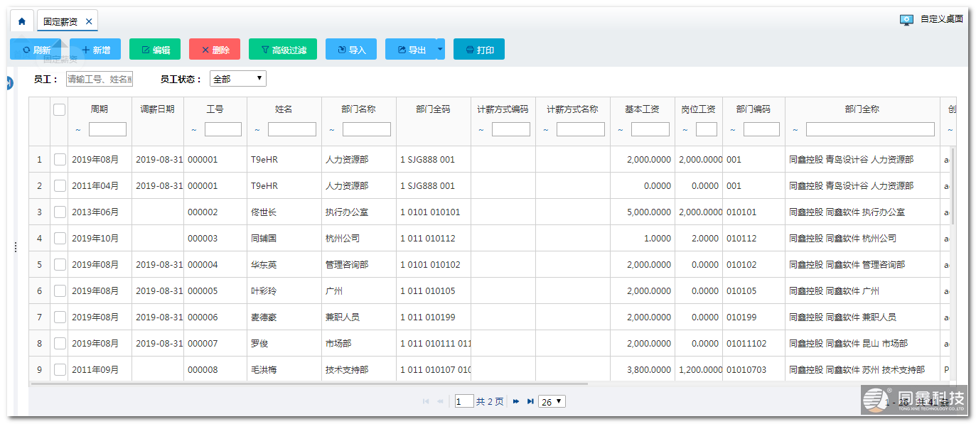 同鑫薪酬管理系統(tǒng)平臺(tái)將企業(yè)薪資分為固定薪資和變動(dòng)薪資,固定工資與員工的職位直接相關(guān),企業(yè)HR人員可以根據(jù)職位的不同設(shè)置不同數(shù)額的固定工資,而變動(dòng)薪資與員工的考勤、績(jī)效有關(guān),這些數(shù)據(jù)也記錄在平臺(tái)中,方便了變動(dòng)薪資的計(jì)算。另外,變動(dòng)工資支持項(xiàng)目擴(kuò)展,便于企業(yè)增加跟多的獎(jiǎng)懲制度。